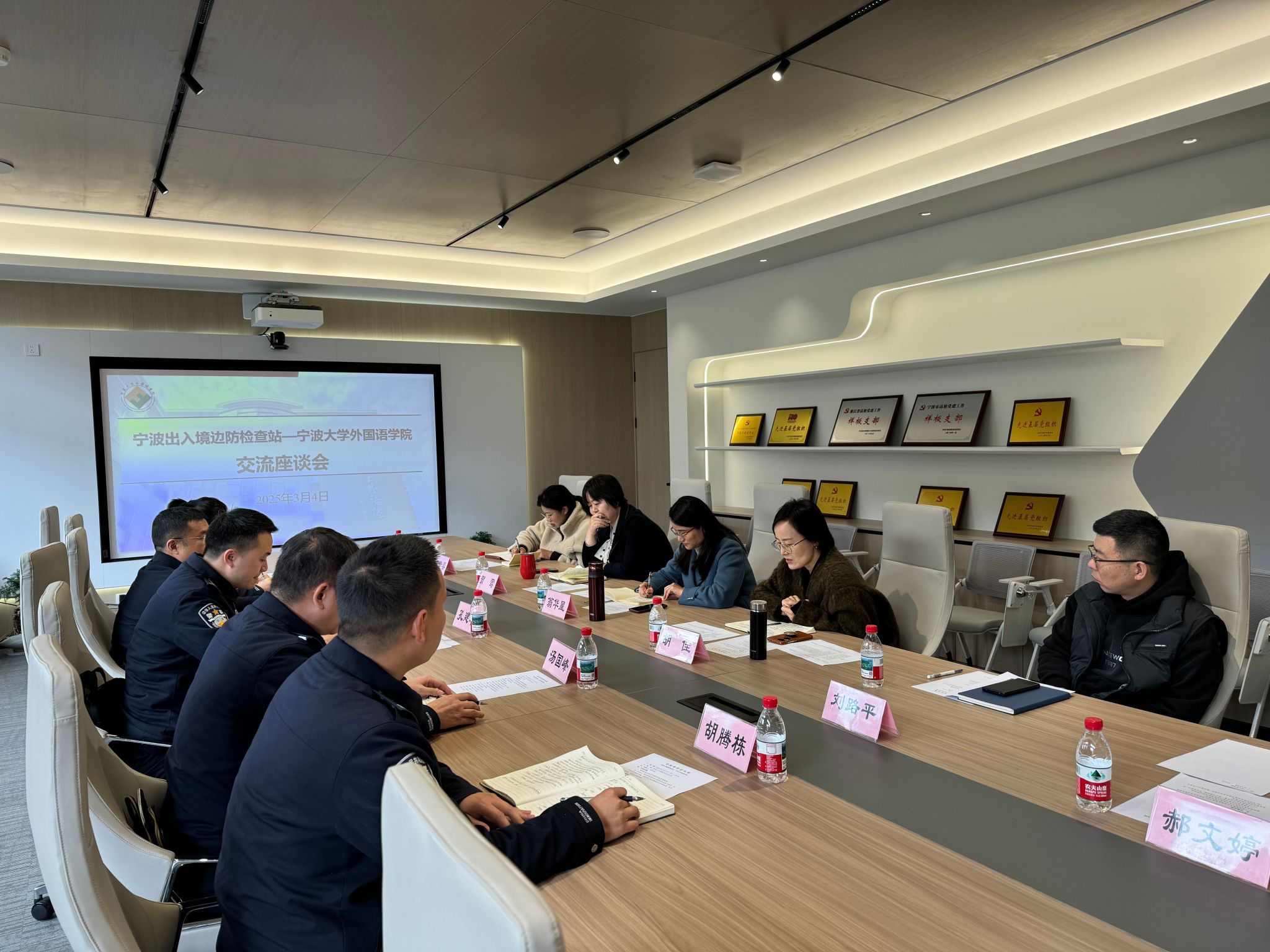 在自由讨论环节,双方具体围绕宁波边检站全站英语听说能力培训、涉外法治实践站实践、边检岗位学生暑期涉外环境体验、青年联谊、外事交流等主题达成了多项合作意向。双方拟于3月底签订相关合作协议,开展联建活动。
